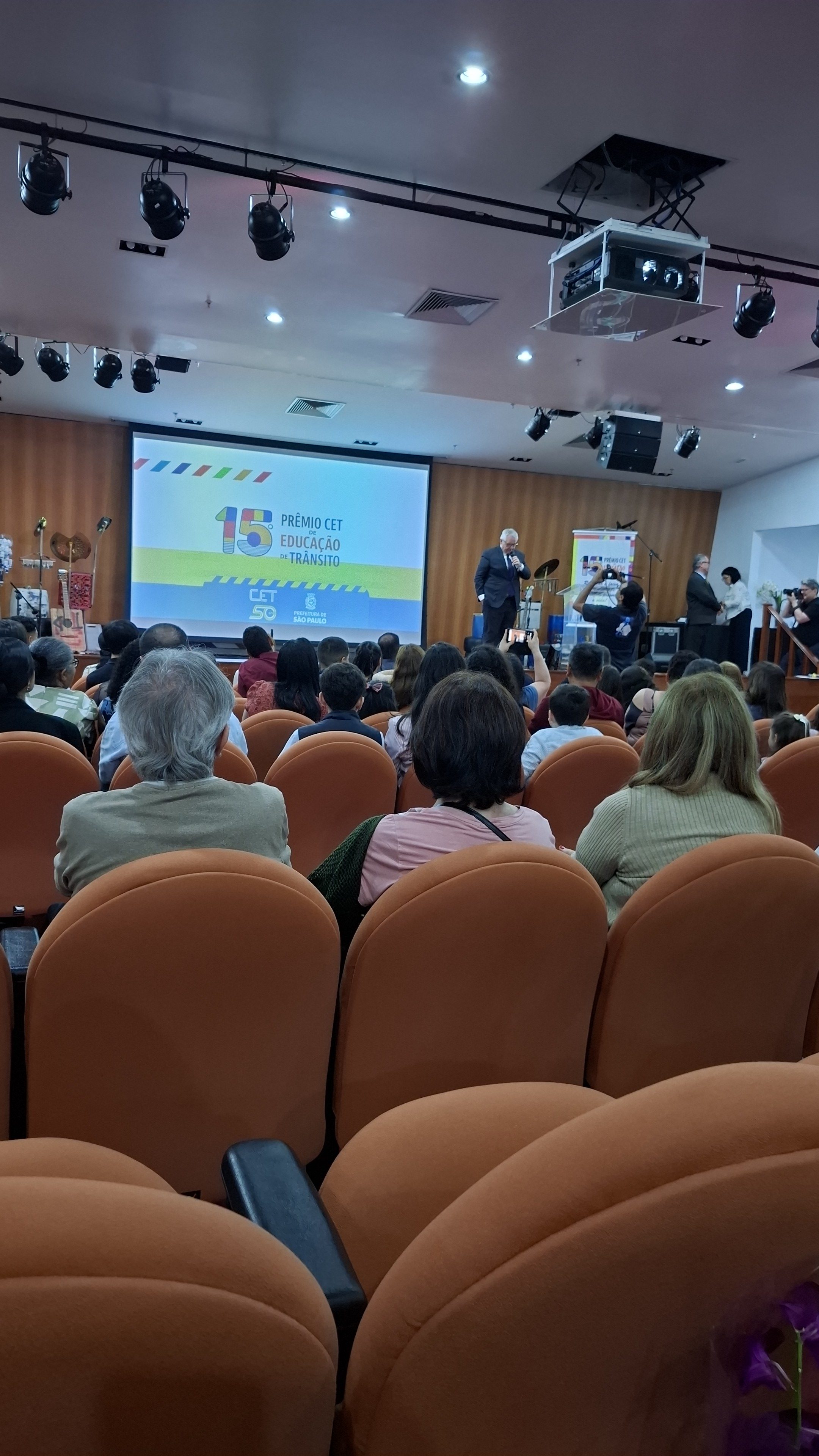 Na manhã de 4/12, a Companhia de Engenharia de Tráfego (CET) realizou a cerimônia da 15ª edição do Prêmio CET de Educação de Trânsito. Ao todo, 11.849 trabalhos foram inscritos em 15 categorias, sobre o tema Respeitar a faixa de pedestres e o semáforo preserva a vida!